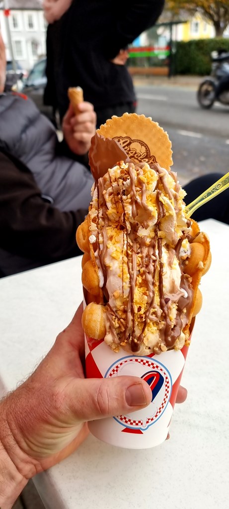 For an ice cream treat, visit Angelato in Aberaeron. Their waffles are to die for!